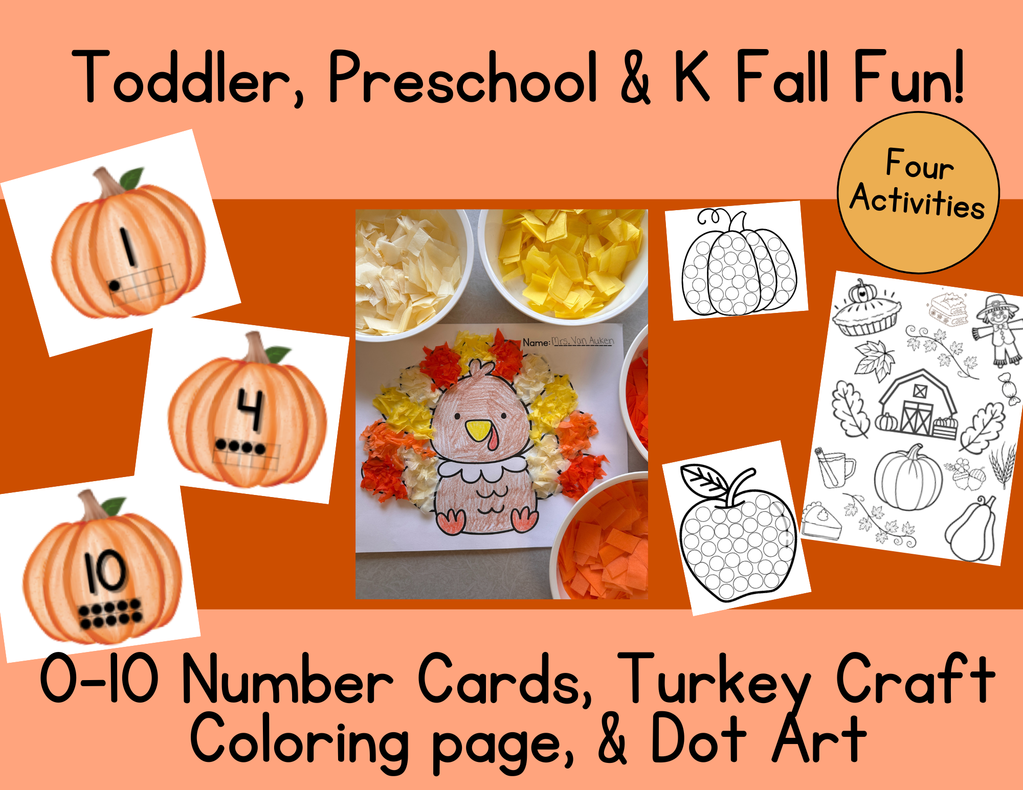 Sensory bin number cards, coloring page, dot art & Thanksgiving Turkey craft here: https://oakandlodesigns.etsy.com/listing/4397477016